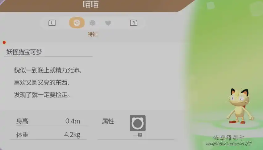 喵喵是遊戲中相當容易取得的寶可夢之一。你只需要搭建一座花田棲息地,無論任何時段或天氣條件都能觸發牠的出現。