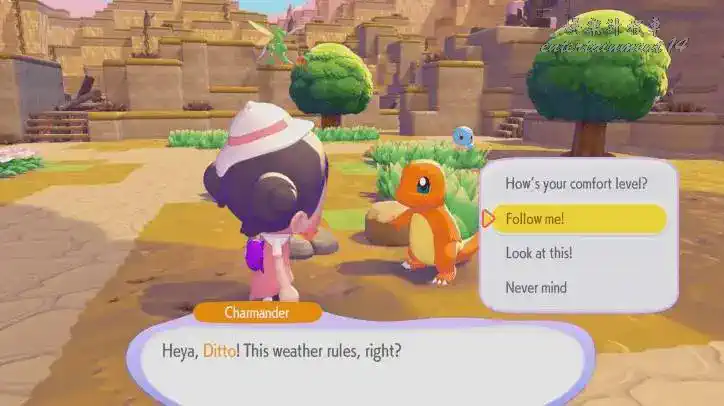 你可以走到寶可夢面前與牠對話,然後選擇「跟著我!」的選項來邀請牠跟隨你。選定之後牠就會自動跟在你的後方移動。