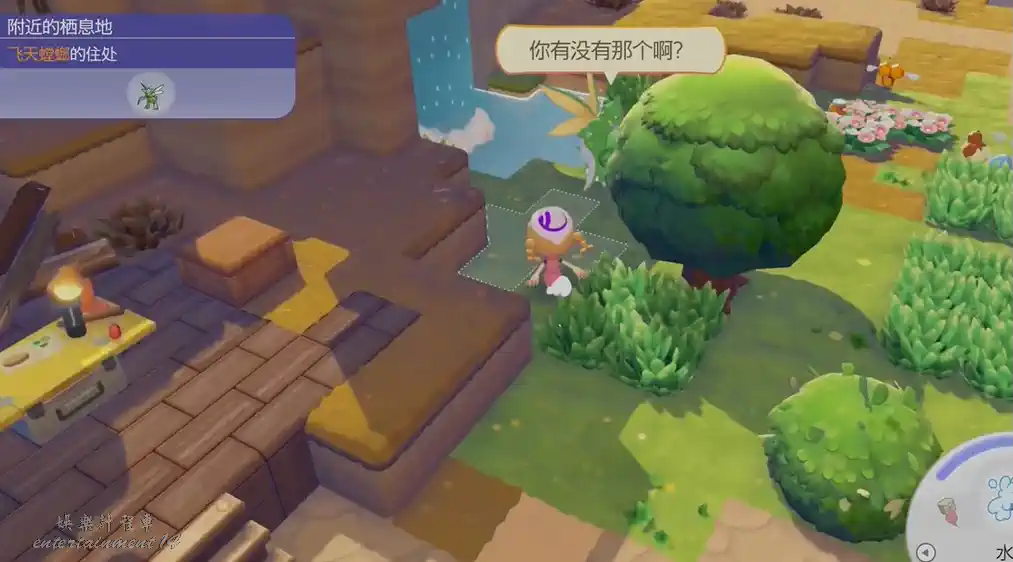 所需材料僅為綠色草搭配大樹,棲息地建好之後飛天螳螂就會自動在附近現身。