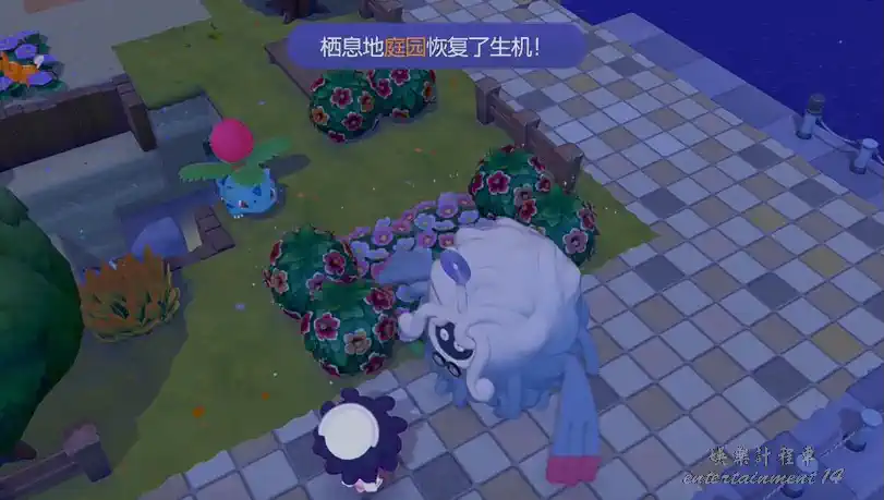 - 畫面會顯示「庭園 / Flower Garden」的標示並出現花園特效