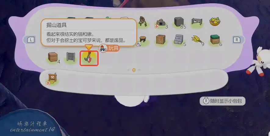- 挖掘工具:在工作台使用鐵錠×3加木材×2製作