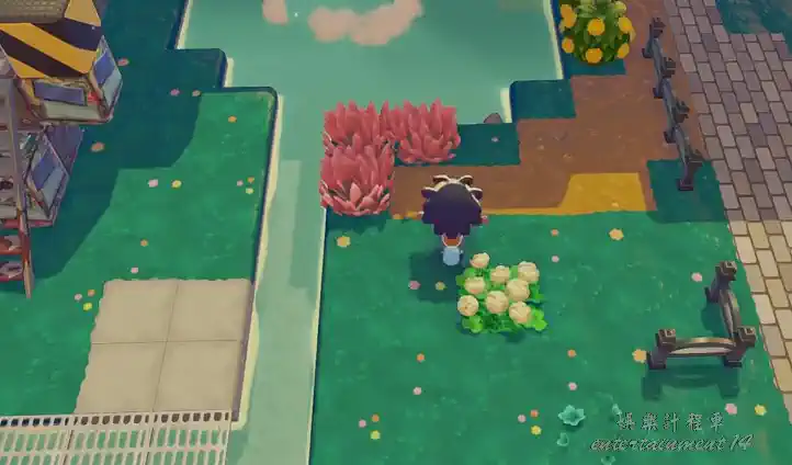- 建議在粉色花田區域就地建造,素材取得更方便且環境條件更容易滿足。