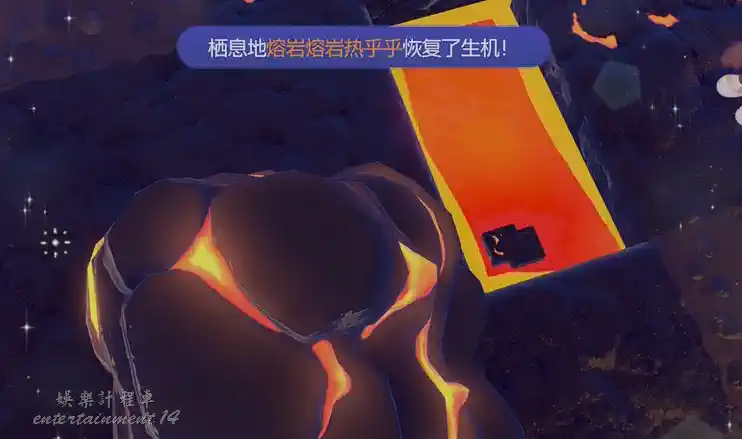 畫面會顯示「熔岩熔岩熱乎乎 / Piping-HotLava」的名稱,並出現岩漿流動搭配火焰的視覺效果。