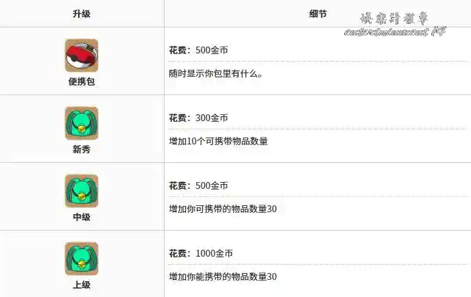 - 打包小貼士是不可或缺的升級道具,有足夠的金幣時就優先購買,背包空間永遠不嫌多。