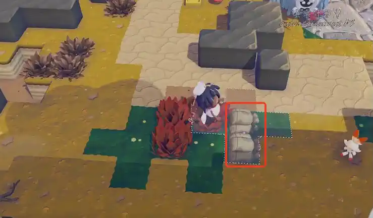 - 將 2 個沙袋放置在高草的相鄰位置(上、下、左、右方向皆可,斜對角無法辨識)